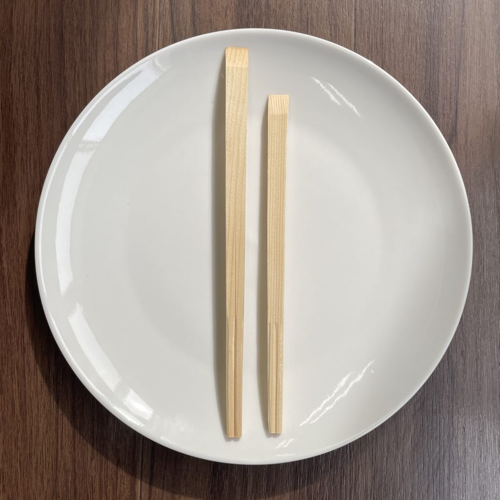 箸の上部(天)を斜めに削る「天削加工」が施されており、上下がひと目でわかる仕様に。配膳時の印象がよく、衛生面でも安心です。
