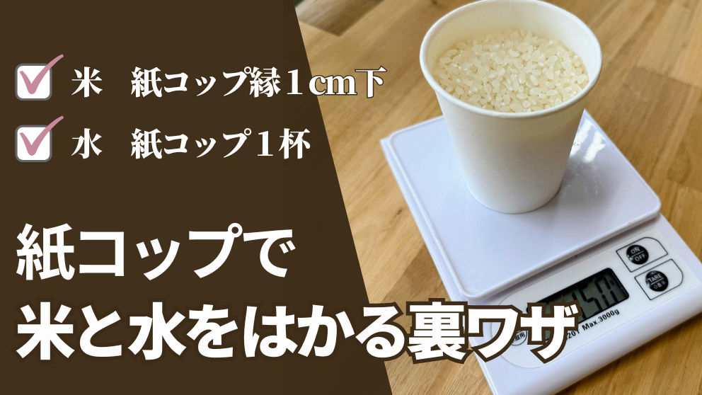 つまり、この紙コップを満水にするだけで、炊飯時に必要な水量が計れるということになります。