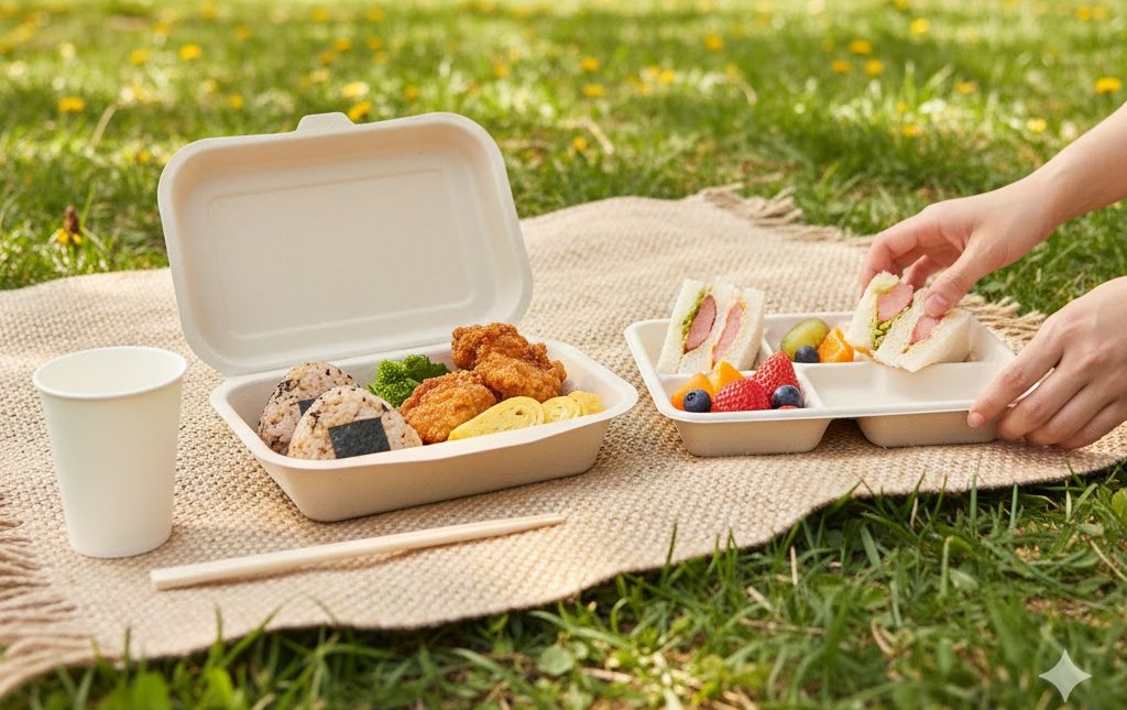 見た目もやさしく、ピクニックの雰囲気を楽しめるバガス容器を中心に、割り箸や紙コップ、紙皿など、屋外での食事に使いやすいアイテムを、後片付けのしやすさも含めて取り上げていきます。