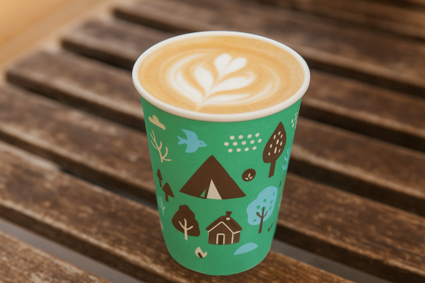 デザイン性と実用性を兼ね備えたみやこの「紙コップ7オンス(Camp)」は、