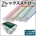フィルム包装フレックスストロー6mm×210mm 白地ストライプ 10000本